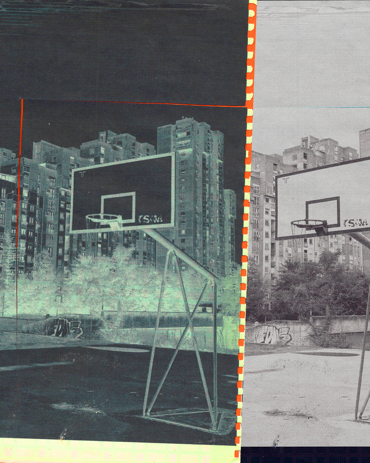 A concept apparel campaign inspired by the basketball culture of Novi Beograd, one of the world’s densest landscapes of outdoor courts framed by post-socialist architecture. Rooted in concrete and movement, the project explores how environment shapes identity and how the game becomes a reflection of collective strength, style, and resilience.